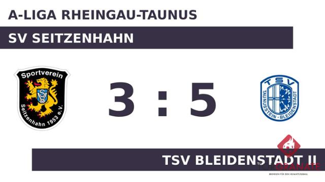 Mirko Radanovic brachte die Heimmannschaft in der 13. Minute ins Hintertreffen. In der 29. Minute brachte Johannes Groeger den Ball im Netz des TSV Bleidenstadt II unter. Benjamin Spiess war zur Stelle und markierte das 2:1 des SV Seitzenhahn (35.). In der 36. Minute erhöhte Leon Russert auf 3:1 für den SV Seitzenhahn. Mit der Führung für den SV Seitzenhahn ging es in die Kabine. Das 2:3 des TSV Bleidenstadt II bejubelte Patrick Brand (49.). Ein lupenreiner Hattrick! Dieses Kunststück gelang Radanovic mit den Treffern (51./87./89.) zum 5:3 für den Gast. Letztlich konnte sich der SV Seitzenhahn nicht aus dem Abstiegssog befreien. Gegen den TSV Bleidenstadt II bekam man die Grenzen aufgezeigt.