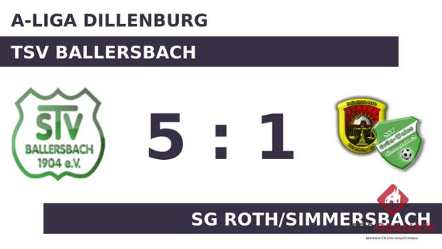 Philipp Rothe brachte die SG Roth/Simmersbach in der 30. Minute ins Hintertreffen. In der 32. Minute erhöhte Tim Junker auf 2:0 für den TSV Ballersbach. Mit dem 3:0 von Noah Levi für den TSV Ballersbach war das Spiel eigentlich schon entschieden (34.). Mit dem 4:0 durch Rothe schien die Partie bereits in der 36. Minute mit dem TSV Ballersbach einen sicheren Sieger zu haben. Die Überlegenheit des TSV Ballersbach spiegelte sich in einer deutlichen Halbzeitführung wider. In der 71. Minute legte Rothe zum 5:0 zugunsten des TSV Ballersbach nach. Wenig später kamen Kevin Merz und Paul Bender per Doppelwechsel für Tom Hahnenstein und Jannis Fuchs auf Seiten des TSV Ballersbach ins Match (73.). In der Schlussphase gelang Lorenz Bastian noch der Ehrentreffer für die SG Roth/Simmersbach (77.). Am Schluss schlug der TSV Ballersbach die Gäste vor eigenem Publikum und rief dabei eine souveräne Leistung ab.