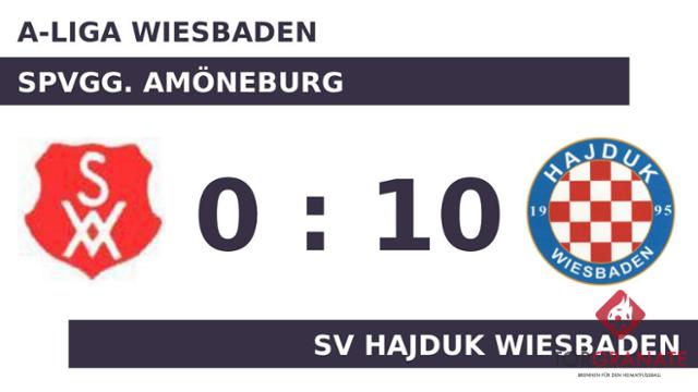 Vlado Barbaric glänzte an diesem Tag besonders. Er traf im Doppelpack für den Gast (3./33.). Es waren die Gäste, die zur Pause eine Führung ihr Eigen nannten. Der SV Hajduk Wiesbaden baute die Führung aus, indem Barbaric zwei Treffer nachlegte (46./47.). Der SV Hajduk Wiesbaden zeigte auch weiterhin keine Gnade. So schossen Sergej Hermann (49./57.) und Barbaric (54.) drei weitere Treffer. Mit Toren von Gojo Kolak (85./90.) und Barbaric (90.) zeigte der SV Hajduk Wiesbaden weiterhin klar, wer dieses Spiel beherrschte. Das einseitige Toreschießen endete schließlich mit dem Schlusspfiff des Unparteiischen Fidan Alihajdaraj (Mühlheim am Main). Der SV Hajduk Wiesbaden ließ dabei keine Gelegenheit aus, die Spvgg. Amöneburg vorzuführen, und nahm einen zweistelligen Sieg mit nach Hause.
