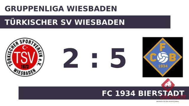 Der Türkischer SV geriet schon in der ersten Minute in Rückstand, als Renato Pereira das schnelle 1:0 für den FC 1934 Bierstadt erzielte. Lange währte die Freude des FC 1934 Bierstadt nicht, denn schon in der fünften Minute schoss Adam Lamsamri den Ausgleichstreffer für den Türkischer SV Wiesbaden. Mit einem schnellen Doppelpack (6./10.) zum 3:1 schockte Niklas Kern den Türkischer SV. Maximilian Gossner musste nach nur 17 Minuten vom Platz, für ihn spielte Tobias Beck weiter. Mit dem 4:1 durch Justin Heidemann schien die Partie bereits in der 33. Minute mit dem FC 1934 Bierstadt einen sicheren Sieger zu haben. Mit dem zweiten Treffer von Lamsamri rückte der Türkischer SV Wiesbaden wieder ein wenig an den FC 1934 Bierstadt heran (45.). Es waren die Gäste, die zur Pause eine Führung ihr Eigen nannten. In der 56. Minute stellte der Türkischer SV personell um: Per Doppelwechsel kamen Nazim Khababa und Ivan Raspaglia auf den Platz und ersetzten Faisal Daudi und Akim Arndt. Heidemann überwand den gegnerischen Schlussmann zum 5:2 für den FC 1934 Bierstadt (62.). Letztlich konnte sich der Türkischer SV Wiesbaden nicht aus dem Abstiegssog befreien. Gegen den Gast bekam man die Grenzen aufgezeigt.