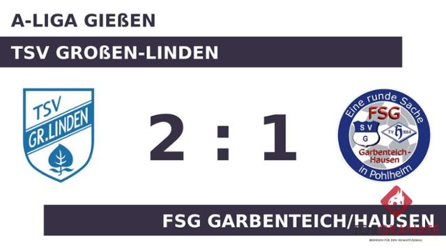 Der Gast geriet schon in der zehnten Minute in Rückstand, als Patric Podgorski das schnelle 1:0 für den TSV Großen-Linden erzielte. Bis zur Halbzeitpause konnte keine der Mannschaften ihre Torbilanz mehr verbessern. Kurz vor Ultimo war noch Markus Celik zur Stelle und zeichnete für das erste Tor der FSG Garbenteich/Hausen verantwortlich (90.). Dominik Papoulis versenkte die Kugel zum 2:0 für den TSV Großen-Linden (90.). Letztlich nahm das Heimteam gegen den direkten Abstiegskonkurrenten wichtige Punkte mit und trug einen Sieg davon.