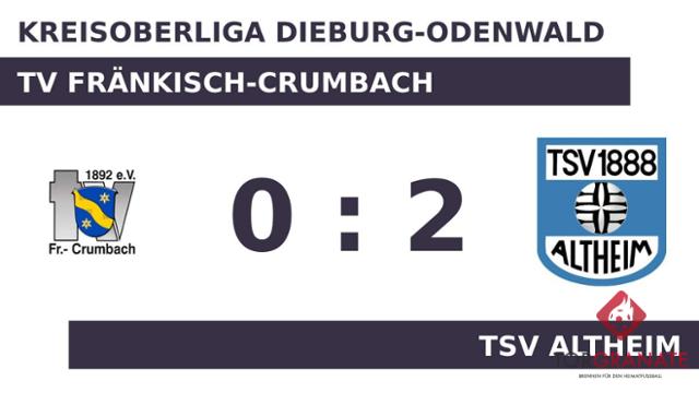 Kurz vor der Pause traf Luca De Michelis für den TSV Altheim (42.). Zum Abpfiff der ersten Halbzeit hatte der TSV Altheim einen knappen Vorsprung herausgespielt. In der 78. Minute brachte Philipp Beck das Netz für den TSV Altheim zum Zappeln. Zum Schluss feierte der TSV Altheim einen dreifachen Punktgewinn gegen den TV Fr.-Crumbach.