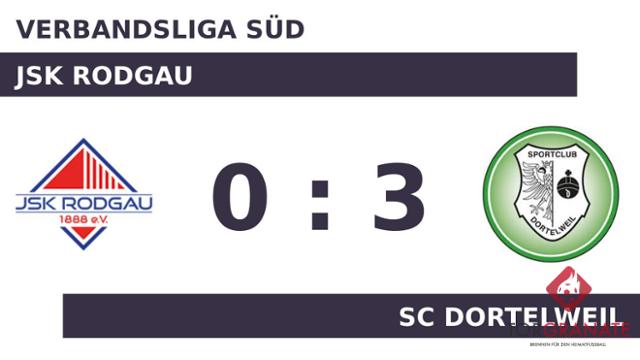 Oliver Steffen trug sich in der elften Spielminute in die Torschützenliste ein. Für Dominik Schlatter war der Einsatz nach zwölf Minuten vorbei. Für ihn wurde Jonas Mueller eingewechselt. Mit der knappen Führung des SC Dortelweil pfiff der Schiedsrichter zur Halbzeit. In der 56. Minute erhöhte Marvin Strenger auf 2:0 für den Sportclub. Maurice Reininger stellte schließlich in der 80. Minute den 3:0-Sieg für die Dortelweiler sicher. Schlussendlich reklamierte der SC Dortelweil einen Sieg in der Fremde für sich und wies den JSK Rodgau mit 3:0 in die Schranken.