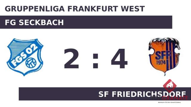 Pierre Massfeller brachte SF Friedrichsdorf in der 18. Spielminute in Führung. Zum psychologisch wichtigen Zeitpunkt kurz vor der Halbzeit (42.) traf Benedict Linzenmeier zum Ausgleich für die FG Seckbach. Eine Aussage darüber, wer am Ende die Nase vorn haben würde, war nach dem Abpfiff der ersten Halbzeit noch nicht zu treffen. Es ging mit einem Gleichstand in die Kabinen. Ab der 52. Minute bereicherte der für Joschua Lyzcarz eingewechselte Turgay Akbulut SF Friedrichsdorf im Vorwärtsgang. Drei Minuten später ging die FG Seckbach durch den zweiten Treffer von Linzenmeier in Führung. Den Freudenjubel der FGS machte Christopher Skoczny zunichte, als er kurz darauf den Ausgleich besorgte (56.). Davor Babic schoss für SF Friedrichsdorf in der 85. Minute das dritte Tor. Ehe der Abpfiff ertönte, war es Akbulut, der das 4:2 aus Sicht von SF Friedrichsdorf perfekt machte (90.). Am Schluss schlug SF Friedrichsdorf die FG Seckbach mit 4:2.