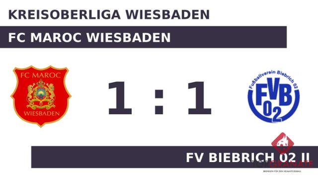 Die erste Halbzeit endete ohne ein zählbares Ereignis für beide Mannschaften. Der FV Biebrich 02 II ging durch Samed Özbeyaz in der 47. Minute in Führung. Aiman Zamouri beförderte das Leder zum 1:1 des FC Maroc Wiesbaden in die Maschen (56.). Beim Abpfiff durch den Schiedsrichter Nurettin Özkesen (Oberursel (Taunus)) stand es zwischen der Heimmannschaft und dem FV Biebrich 02 II pari, sodass sich beide mit jeweils einem Punkt begnügen mussten.