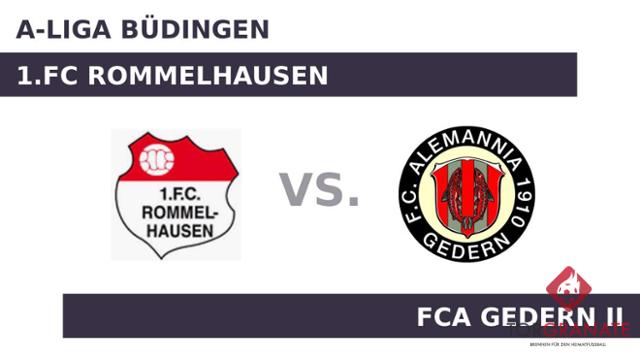 Aufpassen sollte der FCA Gedern II auf die Offensivabteilung der Heimmannschaft, die durchschnittlich mehr als zweimal pro Spiel zuschlug. Hier spielen zwei enge Konkurrenten gegeneinander. Der FCA Gedern II nimmt mit 24 Punkten den siebten Platz ein. Der 1.FC Rommelhausen liegt aber mit nur zwei Punkten weniger auf Platz neun knapp dahinter und kann mit einem Sieg am FCA Gedern II vorbeiziehen. Beide Teams fuhren in dieser Saison bisher sieben Siege ein.