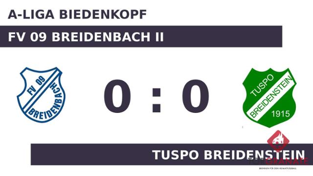 Nach den ersten 45 Minuten ging es für die Heimmannschaft und den TuSpo Breidenstein ohne Torerfolg in die Kabinen. Auch nach Wiederanpfiff tat sich nichts Entscheidendes auf dem Feld, sodass es schlussendlich hieß: Tore Fehlanzeige!