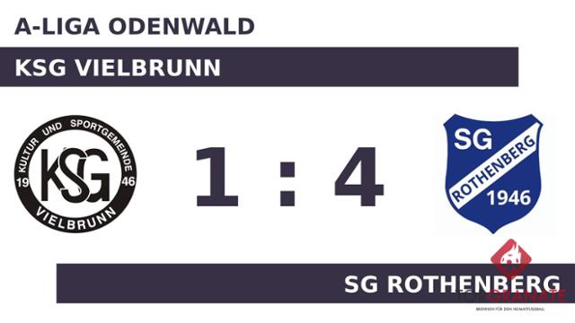 Steffen Heckmann schoss in der 23. Minute vom Elfmeterpunkt das erste Tor des Spiels für die SG Rothenberg. Tom Bulling verwandelte in der 28. Minute einen Elfmeter und baute den Vorsprung der SG Rothenberg auf 2:0 aus. Ein Eigentor der SG Rothenberg in der 35. Minute brachte der KSG Vielbrunn den 1:2-Anschluss. Ein Tor auf Seiten der SG Rothenberg machte zur Pause den Unterschied zwischen den beiden Mannschaften aus. Zum Seitenwechsel ersetzte Patrick Alexnat von der KSG Vielbrunn seinen Teamkameraden Marlon Keil. Mit dem Tor zum 3:1 steuerte Bulling bereits seinen zweiten Treffer an diesem Tag bei (79.). In der 86. Minute legte Nils Schmidt zum 4:1 zugunsten der SG Rothenberg nach. Zum Schluss feierte die SG Rothenberg einen dreifachen Punktgewinn gegen die KSG Vielbrunn.