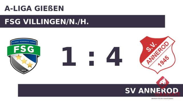 Lucas Smajek stellte die Weichen für den SV Annerod auf Sieg, als er in Minute 18 mit dem 1:0 zur Stelle war. Sean Louis Reiprich ließ sich in der 27. Minute nicht zweimal bitten und verwertete zum 1:1 für die FSG Villingen/N./H. Das letzte Tor der turbulenten Startphase markierte Nicolas Smajek in der 29. Minute. Beim SV Annerod kam zu Beginn der zweiten Hälfte Lukas Teichert für Nicolas Smajek in die Partie. Weitere Tore blieben bis zum Pfiff des Schiedsrichters aus. Somit ging es mit einem unveränderten Stand in die Halbzeitpause. Lucas Smajek schnürte mit seinem zweiten Treffer einen Doppelpack und brachte seine Mannschaft auf die Siegerstraße (67.). Für das 4:1 zugunsten des SV Annerod sorgte dann kurz vor Schluss Marc Schmidt, der die Gäste und die Fans von einer Spitzenplatzierung träumen ließ (88.). Ein starker Auftritt ermöglichte dem SV Annerod am Sonntag einen ungefährdeten Erfolg gegen die FSG Vill/Non/Hungen.