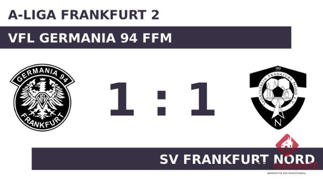 Auf die vermeintliche Siegerstraße brachte Julian Davy sein Team in der elften Minute. Tayfun Aytan nutzte die Chance für den VfL Germania 94 Ffm und beförderte in der 30. Minute das Leder zum 1:1 ins Netz. Der Schiedsrichter schickte schließlich beide Mannschaften ohne weitere Änderung am Spielstand in die Kabinen. Der Schlusspfiff durch den Unparteiischen Ercan Basaran (Frankfurt am Main) setzte allen Hoffnungen auf weitere Treffer ein Ende. Es blieb letztlich bei der Punkteteilung.