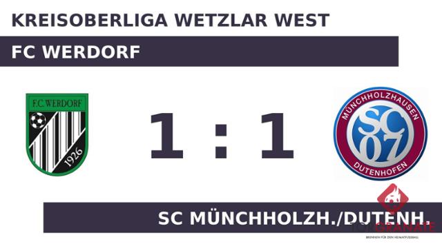 Mert Ruezgar brachte den Ball zum 1:0 zugunsten des FC Werdorf über die Linie (13.). Zur Pause reklamierte der Tabellenletzte eine knappe Führung für sich. Zum Seitenwechsel ersetzte Fouad Noume vom Münchholzh./Dutenh. seinen Teamkameraden Markus Schreiber. Für das 1:1 des Gasts zeichnete Enis Sefic verantwortlich (49.). Am Ende trennten sich der FC Werdorf und der SC Münchholzh./Dutenh. schiedlich-friedlich.