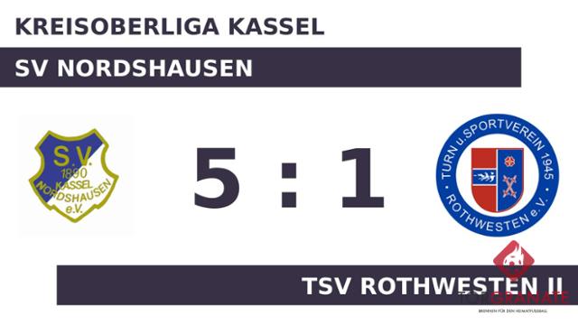 Der TSV Rothwesten II geriet schon in der zehnten Minute in Rückstand, als Youssef Mliki das schnelle 1:0 für den SV Nordshausen erzielte. Zum psychologisch ungünstigen Zeitpunkt vor der Halbzeit (42.) schoss k.A. k.A. einen weiteren Treffer für den SV Nordshausen. Noch vor der Halbzeit legte Mliki seinen zweiten Treffer nach (45.). Der tonangebende Stil des SV Nordshausen spiegelte sich in einer klaren Pausenführung wider. Mit dem 4:0 von Mahmut Baksoy für den Gastgeber war das Spiel eigentlich schon entschieden (48.). Amir Abbas Sharifi erzielte in der 75. Minute den Ehrentreffer für den TSV Rothwesten II. Okan Dereli besorgte in der Schlussphase schließlich den fünften Treffer für den SV Nordshausen (78.). Letztlich kam der SV Nordshausen gegen den TSV Rothwesten II zu einem verdienten 5:1-Sieg.