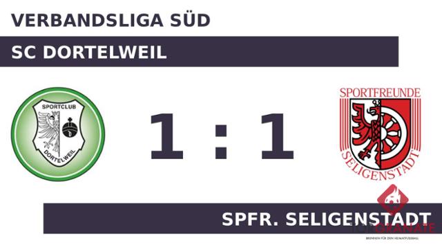Die Spfr. Seligenstadt geriet schon in der siebten Minute in Rückstand, als Moritz Feiler das schnelle 1:0 für den SC Dortelweil erzielte. Dominik Röhl traf zum 1:1 zugunsten der Spfr. Seligenstadt (25.). Nach nur 29 Minuten verließ Kevin Knecht von der Sportfreunde das Feld, Ghoerghe Alexandru Strechie kam in die Partie. Bis zum Abpfiff des ersten Durchgangs wurden keine Tore mehr geschossen und so traten die Mannschaften den Gang in die Kabinen an. Der Schlusspfiff durch Schiedsrichter Anne Uersfeld (Wiesbaden) setzte allen Hoffnungen auf weitere Treffer ein Ende. Es blieb letztlich bei der Punkteteilung.