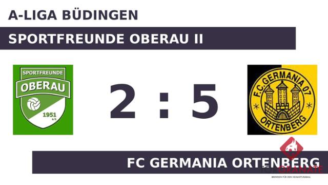 Michael Harnisch musste nach nur 16 Minuten vom Platz, für ihn spielte Samuel Redae weiter. Nach nur 28 Minuten verließ Stefan Popic von den Sportfr. Oberau II das Feld, Fernando Harnisch Guerra kam in die Partie. Für den Führungstreffer der Heimmannschaft zeichnete Enis Gjoshi verantwortlich (30.). Geschockt zeigte sich die Germania Ortenberg nicht. Nur wenig später war Amir Ahmadiabhari mit dem Ausgleich zur Stelle (32.). Weitere Tore gelangen bis zur Halbzeit keinem der Teams und so ging es mit einem unveränderten Stand in die Kabine. Philipp Schlorke trug sich in der 48. Spielminute in die Torschützenliste ein. Der FC Germania Ortenberg baute die Führung im weiteren Verlauf aus. Ahmadiabhari (61.), Jeremy Kindermann (70.) und Florian Zöll (89.) trafen ins Schwarze und sorgten damit für klare Verhältnisse. Frederik Müller traf zum 2:5 zugunsten der Sportfreunde Oberau II (90.). Schließlich strich die Germania Ortenberg die Optimalausbeute gegen die Sportfr. Oberau II ein.