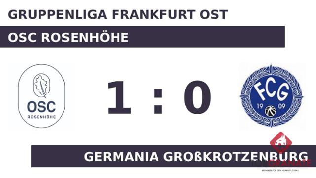 Im ersten Durchgang tasteten sich die beiden Mannschaften lediglich ab, Tore gab es nicht zu verzeichnen. Der OSC Rosenhöhe kam mit einer geänderten Formation aus der Kabine zurück: Erik Kraus war für Daniel Pfitzer zur Stelle. Durch einen Elfmeter von Daniel Sachs gelang dem OSC das Führungstor. Am Ende machte ein Tor den Unterschied zwischen der Rosenhöhe und der Germania Großkrotzenburg aus.
