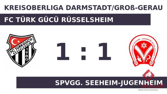 Die erste Halbzeit endete ohne ein zählbares Ereignis für beide Mannschaften. Auf die vermeintliche Siegerstraße brachte Felix Schimmel sein Team in der 51. Minute. In der 61. Minute erzielte Cihan Coban das 1:1 für den FC Türk Gücü Rüsselsheim. Mit dem Abpfiff des Unparteiischen Zanin Saleh Mustafa (Wiesbaden) trennten sich die Gastgeber und die Spvgg. Seeheim-Jugenheim remis.