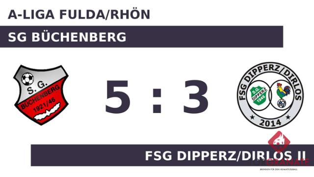 Lennard Happ brachte die SG Büchenberg in der 28. Spielminute in Führung. Mirko Kress verwandelte in der 32. Minute einen Elfmeter und baute den Vorsprung der SGB auf 2:0 aus. Yacine Boussouf legte in der 38. Minute zum 3:0 für die Büchenberger nach. Die Überlegenheit der Rot-Weißen spiegelte sich in einer deutlichen Halbzeitführung wider. Sebastian Burkart schoss die Kugel zum 1:3 für die FSG Dipperz/Dirlos II über die Linie (61.). Durch ein Eigentor der FSG verbesserte die SG Büchenberg den Spielstand auf 4:1 für sich (66.). Mit dem Treffer zum 2:4 in der 70. Minute machte Burkart zwar seinen Doppelpack perfekt – der Rückstand zur SG Büchenberg war jedoch weiterhin groß. Für das 5:2 des Gastgebers sorgte Mike Baumann, der in Minute 78 zur Stelle war. Kai Binder war es, der in der 85. Minute den Ball im Gehäuse der SG Büchenberg unterbrachte. Am Ende behielt die SG Büchenberg gegen die FSG DiDi II die Oberhand.