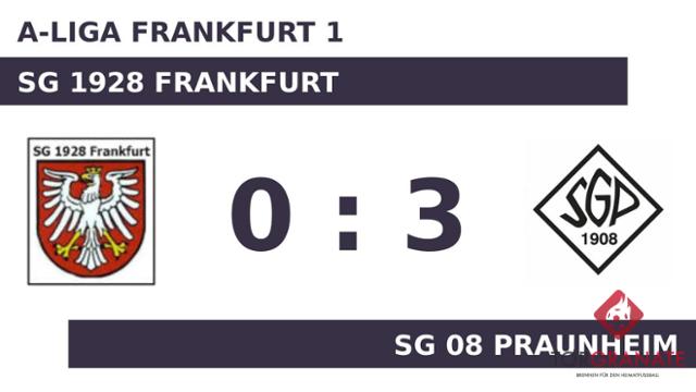 Timo Enders brachte sein Team in der 14. Minute nach vorn. Manuel Priesnitz musste nach nur 19 Minuten vom Platz, für ihn spielte Fardin Rahimi weiter. Elias Bouharrou trug sich in der 38. Spielminute in die Torschützenliste ein. Ohne weitere Tore ging es in die Pause. Mit einem Wechsel – Peter Deilmann kam für Achraf Taourarti – startete die SG 1928 Frankfurt in Durchgang zwei. Wenig später kamen Roberto Cangiano und Ramon Bolender per Doppelwechsel für Nico Tahirovic und Jannik Uusneem auf Seiten von SG Praunheim ins Match (62.). Finn Nord gelang in den Schlussminuten noch ein weiterer Treffer für die Gäste (87.). Ein starker Auftritt ermöglichte SG 08 Praunheim am Sonntag einen ungefährdeten Erfolg gegen die SG 1928 Frankfurt.
