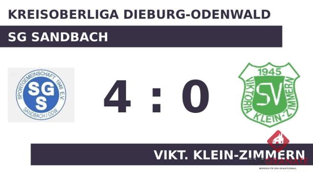 Romeo Bachmann trug sich in der 25. Spielminute in die Torschützenliste ein. Nikolas Helm verwandelte in der 40. Minute einen Elfmeter und baute den Vorsprung der SG Sandbach auf 2:0 aus. Mit der Führung für die SG Sandbach ging es in die Halbzeitpause. Mit dem 3:0 von Philipp Koch für die SG Sandbach war das Spiel eigentlich schon entschieden (56.). In der 86. Minute legte Nazmi Sanori zum 4:0 zugunsten der SG Sandbach nach. Am Ende kam die SG Sandbach gegen die Vikt. Klein-Zimmern zu einem verdienten Sieg.