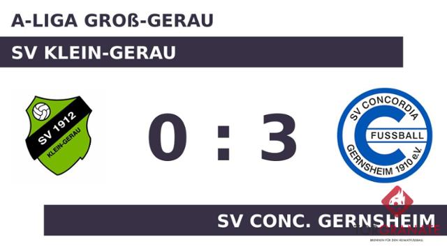Ein frühes Ende hatte das Spiel für Patrick Ferreira vom SV Klein-Gerau, der in der neunten Minute vom Platz musste und von Ahmad Javid Ahmedi ersetzt wurde. Pascal Sattler schoss in der 19. Minute vom Elfmeterpunkt das erste Tor des Spiels für den SV Conc. Gernsheim. Max Meier erhöhte für den Gast auf 2:0 (26.). Es waren die Gäste, die zur Pause eine Führung ihr Eigen nannten. Der SV Conc. Gernsheim konnte mit dem ersten Durchgang sehr zufrieden sein. Trotzdem gab es Veränderungen beim SV Conc. Gernsheim. Maurice Rippert ersetzte Miguel Berisha, der nun schon vorzeitig Feierabend machte. Anstelle von Ferdinand Ukaj war nach Wiederbeginn Paolo Cucculliu für den SV Klein-Gerau im Spiel. Mit dem 3:0 sicherte Meier dem SV Conc. Gernsheim nicht nur den Sieg, sondern erzielte auch seinen zweiten Tagestreffer (72.). Letztlich fuhr der SV Conc. Gernsheim einen souveränen Erfolg ein, dessen Grundstein im ersten Spielabschnitt gelegt worden war.