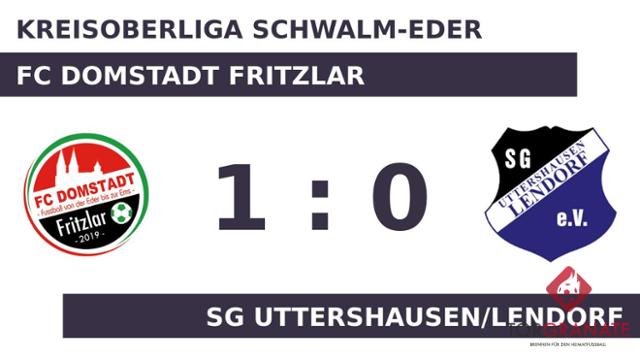 Der Gast geriet schon in der achten Minute in Rückstand, als Dominik Platte das schnelle 1:0 für den FC Domstadt Fritzlar erzielte. Zur Pause war der FC Domstadt Fritzlar im Fahrwasser und verbuchte eine knappe Führung. In der Pause wechselte die SG Uttershausen/Lendorf den nominellen Stürmer Daniel Rein für Alper Demirci ein. Nach der Rückkehr aus der Kabine fielen keine weiteren Tore; so reichte dem FC Domstadt Fritzlar der 1:0-Halbzeitstand für den dreifachen Punktgewinn.