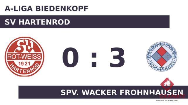Jan Niklas Heck trug sich in der 16. Spielminute in die Torschützenliste ein. Die Spv. Frohnhausen baute den Vorsprung mit der Hilfe des Gegners weiter aus: 2:0 für die Gäste durch ein Eigentor des SV Hartenrod in der 37. Minute. Es waren die Gäste, die zur Pause eine Führung ihr Eigen nannten. Für ruhige Verhältnisse sorgte Christian Immel, als er das 3:0 für die Spv. Wacker Frohnhausen besorgte (69.). Letztlich fuhr die Spv. Frohnhausen einen souveränen Erfolg ein, dessen Grundstein im ersten Spielabschnitt gelegt worden war.
