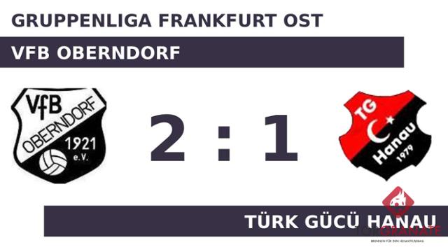 Türk Gücü Hanau geriet schon in der zehnten Minute in Rückstand, als Nico Thomas das schnelle 1:0 für den VfB Oberndorf erzielte. Die Führung hielt allerdings nur sechs Minuten. Ein Eigentor brachte den Ausgleich für Türk Gücü Hanau (16.). Nach nur 23 Minuten verließ Dennis Nix vom VfB Oberndorf das Feld, Elias Korn kam in die Partie. Kurz vor der Pause traf Lukas Roeder für den VfB (45.). Die Oberndorfer nahmen die knappe Führung mit in die Kabine. Bei Türk Gücü Hanau gab es ein neues Gesicht auf dem Platz: Tolunay Özelci wurde für Daniel Cimen eingewechselt. Obwohl dem VfB Oberndorf nach erfolgreicher erster Hälfte keine weiteren Tore gelangen, schaffte es Türk Gücü Hanau zugleich nicht, die Partie zu drehen. Sie endete mit dem Halbzeitstand von 2:1.
