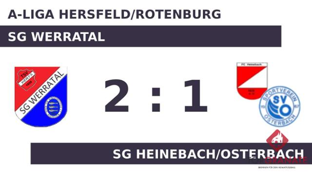 Tobias Leder brachte den Ball zum 1:0 zugunsten der SG Werratal über die Linie (22.). Zum psychologisch ungünstigen Zeitpunkt vor der Halbzeit (45.) schoss Jannes Erbe einen weiteren Treffer für den Spitzenreiter. Mit der Führung für das Heimteam ging es in die Kabine. Die SG Werratal konnte mit dem ersten Durchgang sehr zufrieden sein. Trotzdem gab es Veränderungen bei der SG Werratal. Sofiane Ait-Larbi ersetzte Erbe, der nun schon vorzeitig Feierabend machte. Nichts ließ Heinebach/Osterbach unversucht: Mit Hendrik Kambach kam ein weiterer nomineller Angreifer in die Begegnung, der Marcel Penner ersetzte (67.). Kurz vor Ultimo war noch Jonas Dick zur Stelle und zeichnete für das erste Tor der SG Heinebach/Osterbach verantwortlich (81.). Letzten Endes holte die SG Werratal gegen Heinebach/Osterbach drei Zähler.