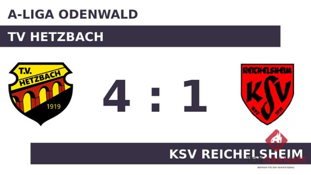 Der TV Hetzbach erwischte einen Blitzstart ins Spiel. Lukas Jäger traf in der sechsten Minute zur frühen Führung. Nach nur 25 Minuten verließ Marco Stenger vom KSV Reichelsheim das Feld, Steffen Dingeldein kam in die Partie. Jan Schwinn versenkte die Kugel zum 2:0 für den TV Hetzbach (35.). Mit der Führung für die Gastgeber ging es in die Kabine. Kevin Schuhmann legte in der 49. Minute zum 3:0 für den TV Hetzbach nach. Mit dem Tor zum 4:0 steuerte Schwinn bereits seinen zweiten Treffer an diesem Tag bei (77.). In der Schlussphase gelang Philipp Ehrhardt noch der Ehrentreffer für den KSV Reichelsheim (80.). Ein starker Auftritt ermöglichte dem TV Hetzbach am Sonntag einen ungefährdeten Erfolg gegen den KSV Reichelsheim.