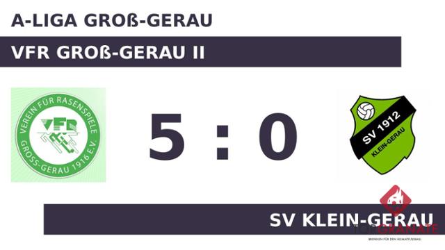 Nach nur 23 Minuten verließ Anil Oezcan vom SV Klein-Gerau das Feld, Eren Ünalan kam in die Partie. Adnan Baytemür beförderte das Leder zum 1:0 von VfR Groß-Gerau II in die Maschen (39.). Einen Torerfolg in Halbzeit eins verbuchte lediglich der Ligaprimus, womit man eine knappe Führung mit in die Kabinen nahm. Zum Seitenwechsel ersetzte Asmir Dautovic vom SV Klein-Gerau seinen Teamkameraden Ferdinand Ukaj. In Durchgang zwei lief k.A. k.A. anstelle von Mohamed Lamkadmi für VfR Groß-Gerau II auf. Laurenz Kerstan erhöhte den Vorsprung der Heimmannschaft nach 47 Minuten auf 2:0. K.A. brachte VfR Groß-Gerau II in ruhiges Fahrwasser, indem er das 3:0 erzielte (57.). Wenig später kamen Omar Lamkadmi und Ayoub Mahmoud per Doppelwechsel für David Alexander Seidel und Baytemür auf Seiten von VfR Groß-Gerau II ins Match (61.). Mahmoud gelang ein Doppelpack (81./89.), mit dem er das Ergebnis auf 5:0 hochschraubte. Letztlich feierte VfR Groß-Gerau II gegen den SV Klein-Gerau nach einer überzeugenden Darbietung einen verdienten Heimsieg.