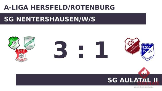 Marcel Mangold schoss in der 15. Minute vom Elfmeterpunkt das erste Tor des Spiels für die SG Nentershausen/W/S. Rico Muhlack versenkte die Kugel zum 2:0 für die Dreier-Spielgemeinschaft (24.). Ohne dass sich am Stand noch etwas geändert hatte, verabschiedeten sich beide Mannschaften zur Pause in die Kabinen. Mit dem 3:0 von Pascal Mangold für die SG NWS war das Spiel eigentlich schon entschieden (52.). Jehad Abed Alrahman verkürzte für die SG Aulatal II später in der 65. Minute auf 1:3. Als Schiedsrichter Jörg Zeinar (Morschen) die Partie abpfiff, reklamierte die SG Nentershausen/W/S schließlich einen 3:1-Heimsieg für sich.