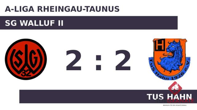 Für das 1:0 der SG Walluf II zeichnete Christopher Martin verantwortlich (18.). Das 1:1 des TuS Hahn stellte Stjepan Sabljic sicher (35.). Zum Seitenwechsel hatte keine Mannschaft die Oberhand gewonnen. Unentschieden lautete der Zwischenstand. Mit seinem Treffer aus der 90. Minute bewahrte Tomas Pocius seine Mannschaft vor der Niederlage und machte kurz vor dem Abpfiff das Remis perfekt. Der Treffer zum 2:1 sicherte der SG Walluf II nicht nur die Führung – es war auch bereits der zweite von Martin in diesem Spiel (90.). Am Ende stand es zwischen der Heimmannschaft und dem TuS Hahn pari.