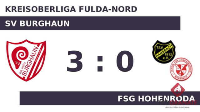 Ein frühes Ende hatte das Spiel für Patrick Schleinig von der FSG, der in der 14. Minute vom Platz musste und von Sascha Schleinig ersetzt wurde. Ehe der Schiedsrichter Jonas Vitt (Rotenburg a. d. Fulda) die Protagonisten zur Pause bat, traf Nico Gavos zum 1:0 zugunsten des SV Burghaun (44.). Die FSG Hohenroda kam mit einer geänderten Formation aus der Kabine zurück: Robin Rudolph war für Tobias Nensel zur Stelle. Zum Abpfiff der ersten Halbzeit hatte der SV Burghaun einen knappen Vorsprung herausgespielt. Gavos schnürte mit seinem zweiten Treffer einen Doppelpack und brachte seine Mannschaft auf die Siegerstraße (49.). Der SV Burghaun stellte in der 63. Minute personell um: Loris Balzert ersetzte Janis Gavos und damit ein nomineller Verteidiger den anderen. Fabian Hutfleß vollendete zum dritten Tagestreffer in der 65. Spielminute. Mit dem Schlusspfiff durch Schiedsrichter Jonas Vitt (Rotenburg a. d. Fulda) siegte der SV Burghaun gegen die FSG Hohenroda.