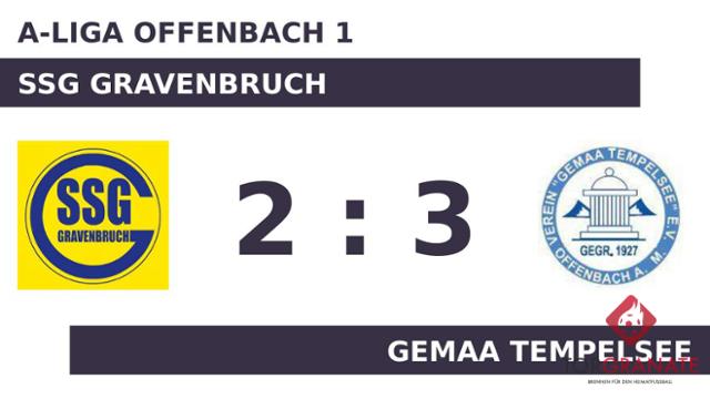 Die Gäste gingen durch Lukas Danielewski in der 22. Minute in Führung. In der Zeit bis zur Pause fiel kein weiteres Tor, es blieb bei der Führung für das Gemaa Tempelsee. Youssef Rick war zur Stelle und markierte das 1:1 der SSG Gravenbruch (51.). Maximilian Ruhr versenkte den Ball in der 73. Minute im Netz der SSG Gravenbruch. Alban Krasnici sicherte der SSG Gravenbruch nach 86 Minuten den Ausgleich durch einen Elfmeter. Ibrahim Ilhan stellte für das Gemaa Tempelsee im Schlussakt den Führungstreffer sicher (90.). Die 2:3-Heimniederlage der SSG Gravenbruch war Realität, als Referee Ediphan Pehlivanli (Dieburg) die Partie letztendlich abpfiff.