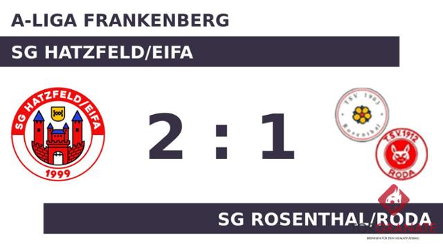 Kaum war das Spiel angepfiffen, lag die SG Rosenthal/Roda bereits in Front. Marvin Starck markierte in der fünften Minute die Führung. In der 26. Minute verwandelte Josia Schneider einen Elfmeter zum 1:1 für die SG Hatzfeld/Eifa. Zur Halbzeit war die Partie noch vollkommen offen. Remis lautete das Zwischenresultat. Bei der SG Rosenthal/Roda kam zu Beginn der zweiten Hälfte Stefan Lerch für Michael Tauscher in die Partie. Der Treffer zum 2:1 sicherte der SG Hatzfeld/Eifa nicht nur die Führung – es war auch bereits der zweite von Schneider in diesem Spiel (66.). Am Schluss schlug die SG Hatzfeld/Eifa die SG Rosenthal/Roda mit 2:1.