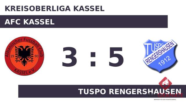Für das erste Tor sorgte Sadik Jusufi. In der 16. Minute traf der Spieler des AFC Kassel ins Schwarze. Jetzt erst recht, dachte sich Mustafa Hamidi, der kurz nach dem Nackenschlag den Ausgleich parat hatte (21.). Der Treffer zum 2:1 sicherte dem AFC Kassel nicht nur die Führung – es war auch bereits der zweite von Jusufi in diesem Spiel (25.). Fatjon Bljakaj erhöhte den Vorsprung des Heimteams nach 33 Minuten auf 3:1. Die Hintermannschaft des Tuspo Rengershausen ließ bis zur Pause kein weiteres Tor zu und es ging bei unverändertem Stand in die Kabinen. Zum Seitenwechsel ersetzte Boris Bajic vom Gast seinen Teamkameraden Amin Adarghal. Manuel Schmidt schlug doppelt zu und glich damit für den Tuspo Rengershausen aus (49./53.). Der AFC Kassel kam nicht mehr ins Spiel zurück, Arian Nessianpour brachte den Tuspo Rengershausen sogar in Führung (75.). Moritz Köhler war es, der kurz vor Ultimo das 5:3 besorgte und den Tuspo Rengershausen inklusive Anhang damit von höheren Gefilden träumen lässt (90.). Die Zeichen standen auf Sieg für den AFC Kassel, doch gab man eine sichere Führung aus der Hand und kassierte letztlich eine bittere Niederlage.