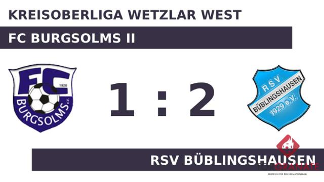 Auf die vermeintliche Siegerstraße brachte Patrick Schmidt sein Team in der 22. Minute. Die passende Antwort hatte Patrick Meisterjahn parat, als er in der 28. Minute zum Ausgleich traf. Der Treffer von Julian Benner zum Endstand erweckte die Hoffnung, dass der RSV Büblingshausen im kommenden Jahr eine Etage höher spielt (38.). Mit einem Tor Vorsprung für den Ligaprimus ging es für die beiden Teams in die Halbzeitpause. Anstelle von Ozan Yaman war nach Wiederbeginn Luis Faber für den Gast im Spiel. Obwohl dem Büblingshausen nach erfolgreicher erster Hälfte keine weiteren Tore gelangen, schaffte es der FC Burgsolms II zugleich nicht, die Partie zu drehen. Sie endete mit dem Halbzeitstand von 2:1.