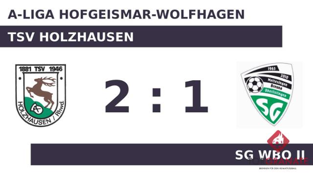 Lukas Becker versenkte die Kugel zum 1:0 (24.). Die Pausenführung des TSV Holzhausen fiel knapp aus. Anstelle von Manuel Berendes war nach Wiederbeginn Jonas Häusling für das SG WBO II im Spiel. Julian Niemetz erhöhte den Vorsprung des TSV Holzhausen nach 61 Minuten auf 2:0. Niklas Käseberg, der von der Bank für Niklas Felix Latendorf kam, sollte für neue Impulse beim SG WBO II sorgen (62.). Käseberg war es, der in der 76. Minute den Ball im Gehäuse des TSV Holzhausen unterbrachte. Unter dem Strich verbuchte der TSV Holzhausen gegen das SG WBO II einen 2:1-Sieg.