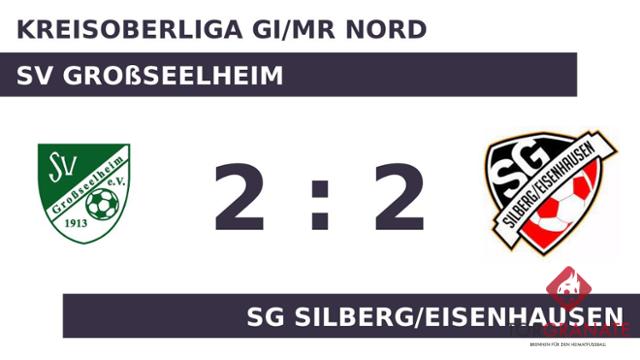 Adrian Debus versenkte die Kugel zum 1:0 (13.). Matthis Hofmann nutzte die Chance für die Silberg/Eisenhausen und beförderte in der 26. Minute das Leder zum 1:1 ins Netz. Zum Seitenwechsel hatte keine Mannschaft die Oberhand gewonnen. Unentschieden lautete der Zwischenstand. In der Pause stellte die SG Silberg/Eisenhausen personell um: Per Doppelwechsel kamen Jonas Biek und Nino Blöcher auf den Platz und ersetzten Jan Marius Wege und Dominic Blöcher. Beim SV Großseelheim kam zu Beginn der zweiten Hälfte Malte Brass für Philipp Löber in die Partie. Lukas Geil traf zum 2:1 zugunsten des SV Großseelheim (49.). Mit seinem Treffer aus der 85. Minute bewahrte Nino Blöcher seine Mannschaft vor der Niederlage und machte kurz vor dem Abpfiff das Remis perfekt. Beim Abpfiff durch den Schiedsrichter Eric Friauf (Mengsberg) stand es zwischen dem SV Großseelheim und der Silberg/Eisenhausen pari, sodass sich beide mit jeweils einem Punkt begnügen mussten.