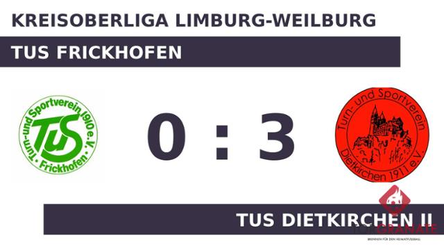 Ehe es in die Kabinen ging, markierte Patrick Schmitt das 1:0 für die Gäste (43.). Ein Tor auf Seiten des TUS Dietkirchen II machte zur Pause den Unterschied zwischen den beiden Mannschaften aus. Paul Steinhauer versenkte die Kugel zum 2:0 (86.). Max Gotthardt war es, der kurz vor Ultimo das 3:0 besorgte und den TUS Dietkirchen II inklusive Anhang damit von höheren Gefilden träumen lässt (90.). Ein starker Auftritt ermöglichte dem TUS Dietkirchen II am Sonntag einen ungefährdeten Erfolg gegen den TuS Frickhofen.