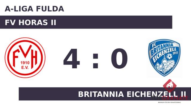 Ein Doppelpack brachte den FV Horas II in eine komfortable Position: Adam Nait-Slimani war gleich zweimal zur Stelle (8./26.). Wenig später kamen Samuel Hauser und Fidan Hykolli per Doppelwechsel für Patrick Jäger und Marven Schwarz auf Seiten von Britannia Eichenzell II ins Match (27.). Kurz vor dem Halbzeitpfiff (43.) baute Nils Jonas Maurer die Führung des FV Horas II aus. Das überzeugende Auftreten des FVH fand Ausdruck in einer klaren Halbzeitführung. Eigentlich war der FC Britannia II schon geschlagen, als Robert Babich das Leder zum 0:4 über die Linie beförderte (50.). Letztlich feierte der FV Horas II gegen die Britannia nach einer überzeugenden Darbietung einen verdienten 4:0-Heimsieg.