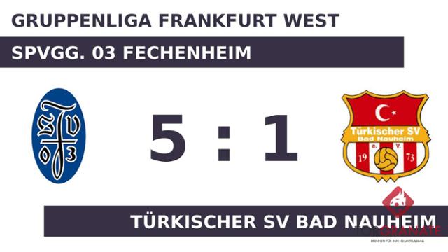 Ehe der Unparteiische Nikolas Czypull (Lautertal (Odenwald)) die Protagonisten zur Pause bat, traf Giovanbattista Pedace zum 1:0 zugunsten der Spvgg. 03 Fechenheim (41.). Die Spvgg. 03 hatte zur Pause eine knappe Führung auf dem Zettel stehen. Beim Türkischer SV Bad Nauheim kam zu Beginn der zweiten Hälfte Abdul Baki Özisli für Samet Oezisli in die Partie. Ouassim Ouass verwandelte in der 51. Minute einen Elfmeter und baute den Vorsprung der Spvgg. 03 Fechenheim auf 2:0 aus. Kevin Klein überwand den gegnerischen Schlussmann zum 3:0 für die Fechenheimer (52.). Wenig später kamen Metehan Karakus und Athanasios Tsilifis per Doppelwechsel für Kennedy Ogbonnaya und Julen Herrero Cennamo auf Seiten der Heimmannschaft ins Match (54.). Simon Kammer schoss die Kugel zum 1:3 für den TSV Bad Nauheim über die Linie (65.). Ouass gelang ein Doppelpack (69./75.), mit dem er das Ergebnis auf 5:1 hochschraubte. Letztlich feierte die Spvgg. 03 Fechenheim gegen den Türkischer SV Bad Nauheim nach einer überzeugenden Darbietung einen verdienten 5:1-Heimsieg.