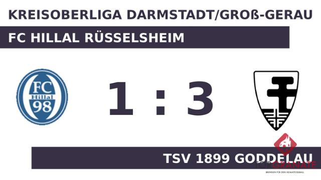Mohamed Tajjiou brachte den Ball zum 1:0 zugunsten von Hillal Rüsselsheim über die Linie (13.). Ein frühes Ende hatte das Spiel für Ibrahim Achibani vom Schlusslicht, der in der 13. Minute vom Platz musste und von Ahmet Yildirim ersetzt wurde. Für das erste Tor des TSV 1899 Goddelau war Fabrice Klink verantwortlich, der in der 21. Minute das 1:1 besorgte. Zum Seitenwechsel hatte keine Mannschaft die Oberhand gewonnen. Unentschieden lautete der Zwischenstand. Mit einem Wechsel – Jerome Jellouli kam für Silas Hofferbert – startete der TSV 1899 Goddelau in Durchgang zwei. Beim Gast kam zu Beginn der zweiten Hälfte Simon Pfaff für Florian Hirsch in die Partie. Anstelle von Rachid El Ghazouani war nach Wiederbeginn Houdaifa Nasri für den FC Hillal Rüsselsheim im Spiel. Enrico Stolz verwandelte in der 48. Minute einen Elfmeter und brachte dem TSV 1899 Goddelau die 2:1-Führung. Ehe der Abpfiff ertönte, war es Jannek Bunzel, der das 3:1 aus Sicht des TSV 1899 Goddelau perfekt machte (88.). Referee Frederik Kutz (Frankfurt am Main) beendete schließlich das Spiel und somit kassierte Hillal Rüsselsheim eine schmerzliche Niederlage gegen einen direkten Konkurrenten im Abstiegskampf.