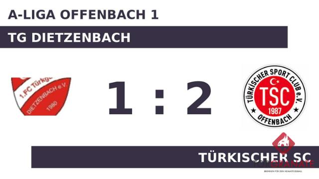 Hueseyin Saygaz musste nach nur 20 Minuten vom Platz, für ihn spielte Murat Yildiz weiter. Enes Esin stellte die Weichen für Türkischer SC auf Sieg, als er in Minute 31 mit dem 1:0 zur Stelle war. Zur Pause behielt Türkischer SC die Nase knapp vorn. Abdullah Tamac erhöhte den Vorsprung von Türkischer SC nach 58 Minuten auf 2:0. Für das 1:2 von TG Dietzenbach zeichnete Outhman Bouras verantwortlich (90.). Schließlich sprang für Türkischer SC gegen TG Dietzenbach ein Dreier heraus.
