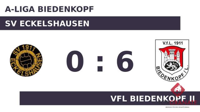 Kaum war das Spiel angepfiffen, lag der VfL Biedenkopf II bereits in Front. Michael Himmelreich markierte in der ersten Minute die Führung. Die nächsten beiden Treffer waren einem Mann vorbehalten: Luca Kaiser schnürte einen Doppelpack (7./14.), sodass die Gäste fortan mit 3:0 führten. Nach nur 23 Minuten verließ Alessandro Montagnino vom SV Eckelshausen das Feld, Talha Cetin kam in die Partie. Der VfL Biedenkopf II konnte mit dem ersten Durchgang sehr zufrieden sein. Trotzdem gab es Veränderungen beim VfL Biedenkopf II. Jan Kaiser ersetzte Christian Ruppert, der nun schon vorzeitig Feierabend machte. Der SV Eckelshausen rettete sich mit einem deutlichen Rückstand in die Halbzeitpause. Mit dem Tor zum 4:0 steuerte Himmelreich bereits seinen zweiten Treffer an diesem Tag bei (61.). Hussein El Issa vollendete zum fünften Tagestreffer in der 66. Spielminute. Das 6:0 für den VfL Biedenkopf II stellte Luca Kaiser sicher. In der 90. Minute traf er zum dritten Mal während der Partie. Schlussendlich setzte sich der VfL Biedenkopf II mit sechs Toren durch und machte bereits vor dem Seitenwechsel klar, welche Mannschaft als Sieger vom Platz gehen würde.