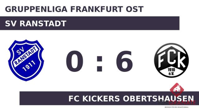 Für das erste Tor sorgte Ediz Davulcu. In der 13. Minute traf der Spieler des FC Kickers Obertshausen ins Schwarze. Bereits in der 15. Minute erhöhte Metin Aydin den Vorsprung der Kickers. Die Hintermannschaft des SV Ranstadt ließ bis zur Pause kein weiteres Tor zu und es ging bei unverändertem Stand in die Kabinen. In der 49. Minute legte Georg Mannhart zum 3:0 zugunsten der Kickers Obertshausen nach. Mit dem 4:0 von Jan Gebhardt für den FCK war das Spiel eigentlich schon entschieden (51.). Der fünfte Streich der Obertshäuser war Simon Weirich vorbehalten (58.). Eigentlich war der SV Ranstadt schon geschlagen, als Marius Krikser das Leder zum 0:6 über die Linie beförderte (60.). Wenig später kamen Faiz Jawid Sheik und Marc Klinkel per Doppelwechsel für Raphael Kreis und Mathieu Folschweiller auf Seiten des FC Kickers Obertshausen ins Match (64.). Die Gäste stellten in der 72. Minute mit einem Dreifachwechsel groß um und schickten Salah Ismael, Aurelien Bihangou und Yannick Hoef für Sven Goldammer, Gebhardt und Mannhart auf den Platz. Die Kickers Obertshausen überrannte den SV Ranstadt förmlich mit sechs Toren und fährt so mit einem verdienten Sieg in der Tasche nach Hause.