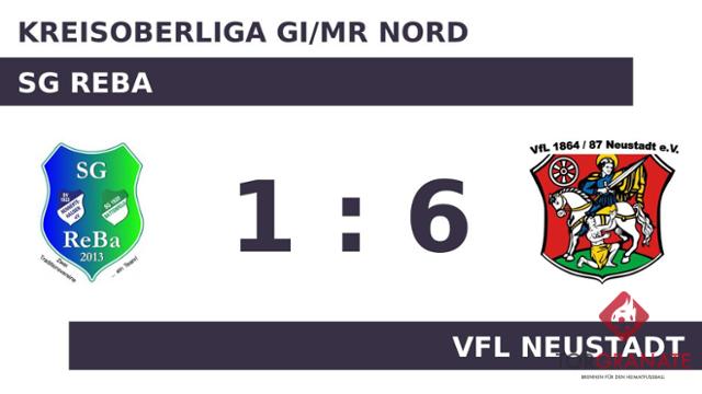 Kaum war das Spiel angepfiffen, lag der VfL Neustadt bereits in Front. Tom Bauscher markierte in der zweiten Minute die Führung. In der 27. Minute erhöhte Chris Helm auf 2:0 für die Gäste. In der 34. Minute verwandelte Gian-Luca Sanzone dann einen Elfmeter für den VfL Neustadt zum 3:0. Die SG ReBa ließ zumindest bis zur Pause kein weiteres Tor zu und so blieb es bis zum Halbzeitpfiff beim deutlichen Vorsprung des VfL Neustadt. Valerio Sanzone (76.) und Gian-Luca Sanzone (81.) brachten den VfL Neustadt mit zwei schnellen Treffern weiter nach vorne. Die SG ReBa kam kurz vor dem Ende durch Yannic Holzapfel zum Ehrentreffer (87.). Den Vorsprung des VfL Neustadt ließ Justin Moser in der 90. Minute anwachsen. Mit dem Spielende fuhr der VfL Neustadt einen Kantersieg ein. Bereits vor dem Seitenwechsel war für die SG ReBa klar, dass gegen den VfL Neustadt heute kein Kraut gewachsen war.