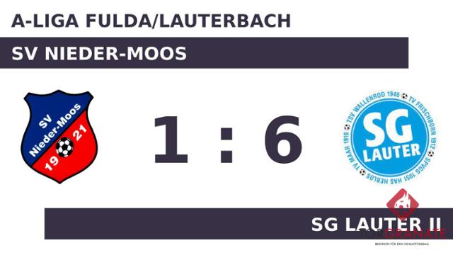 Die SG Lauter II geriet schon in der zehnten Minute in Rückstand, als Nico Peppel das schnelle 1:0 für den SV Nieder-Moos erzielte. Andreas Greb witterte seine Chance und schoss den Ball zum 1:1 für die SG Lauter II ein (20.). Zur Halbzeit war die Partie noch vollkommen offen. Remis lautete das Zwischenresultat. In der Pause stellte die SG Lauter II personell um: Per Doppelwechsel kamen Vincent Schnell und Ekko Stöppler auf den Platz und ersetzten Joris Killer und Lucas Müller. Mit einem Wechsel – Igor Soltoian kam für Manuel Atzert – startete der SV Nieder-Moos in Durchgang zwei. Das 2:1 der SG Lauter II bejubelte Daniel Steuernagel (50.). Matthis Sang (55.) und Schnell (60.) erhöhten, ehe Darius Perlak das 5:1 besorgte (71.). Das 6:1 für die SG Lauter II stellte Steuernagel sicher. In der 77. Minute traf er zum zweiten Mal während der Partie. Die SG überrannte den SV Nieder-Moos förmlich mit sechs Toren und fährt so mit einem verdienten Sieg in der Tasche nach Hause.