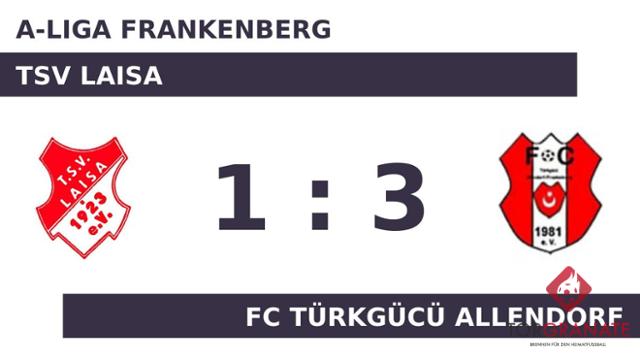 Oleg Heft schoss in der 32. Minute vom Elfmeterpunkt das erste Tor des Spiels für das Türkgücü Allendorf. Zur Pause behielten die Gäste die Nase knapp vorn. In der 67. Minute erzielte Tim Arnold das 1:1 für den TSV Laisa. Dass der FC Türkgücü Allendorf in der Schlussphase auf den Sieg hoffte, war das Verdienst von Burak Mercan, der in der 80. Minute zur Stelle war. Ehe der Abpfiff ertönte, war es k.A. k.A, der das 3:1 aus Sicht des Türkgücü Allendorf perfekt machte (90.). Letzten Endes holte der FC Türkgücü Allendorf gegen den TSV Laisa drei Zähler.