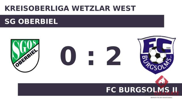 Im ersten Durchgang tasteten sich die beiden Mannschaften lediglich ab, Tore gab es nicht zu verzeichnen. In Durchgang zwei lief Krzysztof Marszalek anstelle von Alexander Sieber für den FC Burgsolms II auf. Marlon Mignon, der von der Bank für Moritz Meister kam, sollte für neue Impulse beim FC Burgsolms II sorgen (64.). Der FC Burgsolms II ging mit einem Elfmeter von Patrick Schmidt in Führung (67.). Ehe der Abpfiff ertönte, war es Mignon, der das 2:0 aus Sicht des FC Burgsolms II perfekt machte (90.). Am Ende verbuchte der FC Burgsolms II gegen die SG Oberbiel einen Sieg.